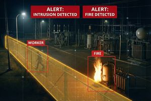 AI, izinsiz girişleri, ekipman tehlikelerini, yangın risklerini ve yetkisiz personeli tespit eder.